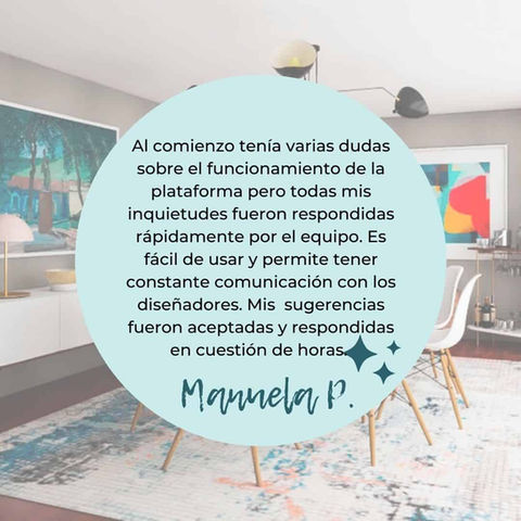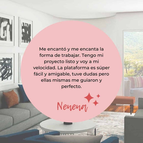 Estoy al tanto que esto de decorar online puede sonar un poco innovador y, quizá, hasta complicado si no te consideras particularmente tecnológica. Pero te prometo que eso no es así; nuestro servicio es LO MÁXIMO y además es muy fácil e intuitivo. Siempre te podrás comunicar conmigo, y te aseguro que tu casa quedará como siempre te la imaginaste (o mejor!)